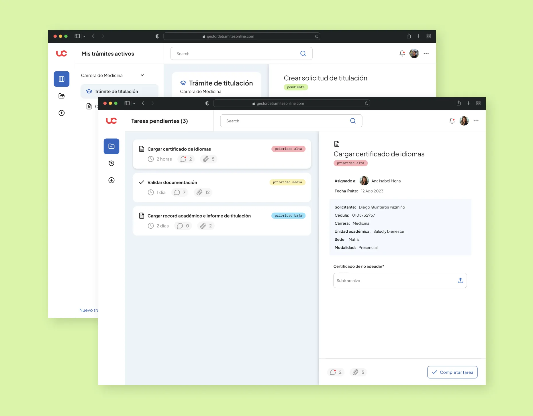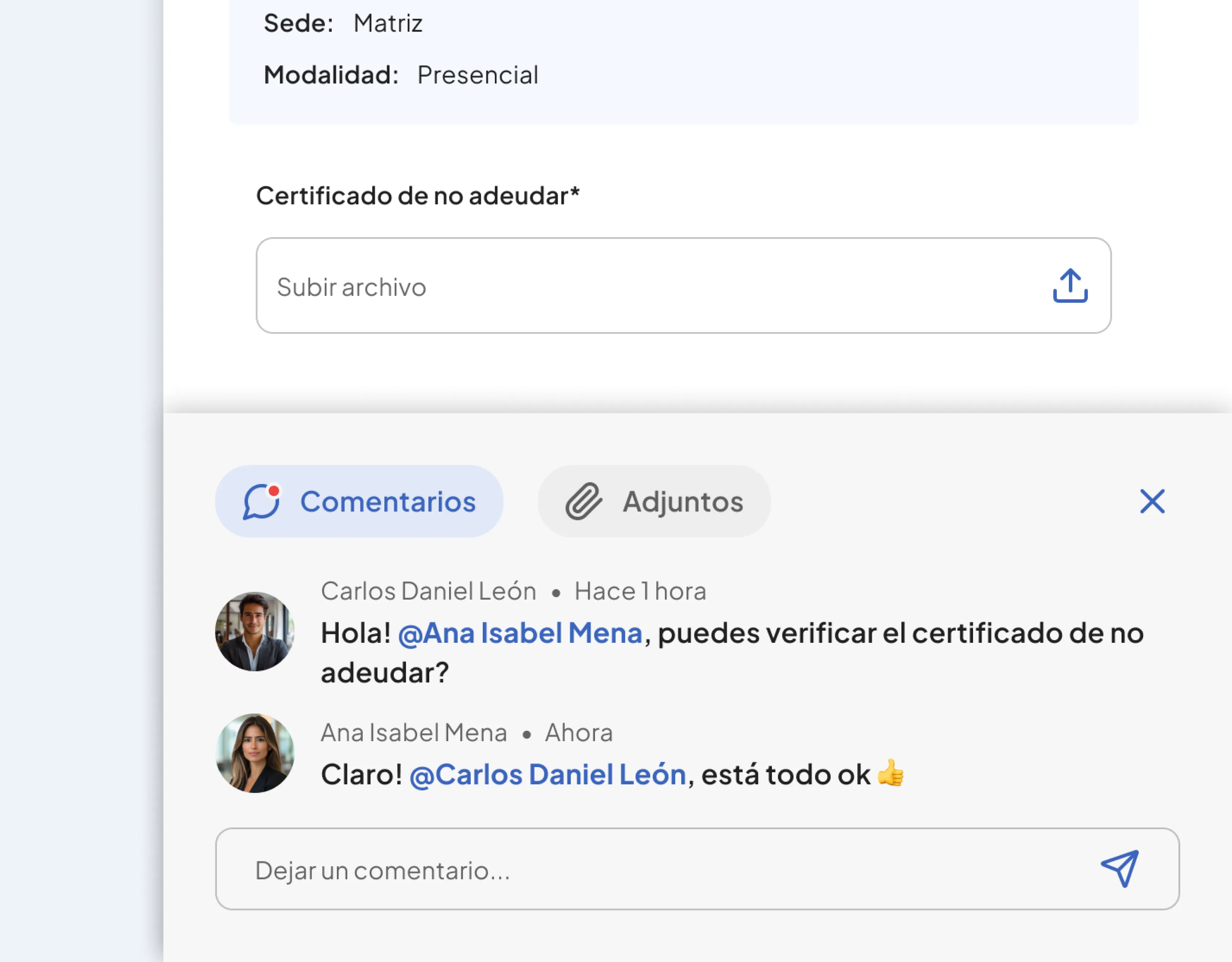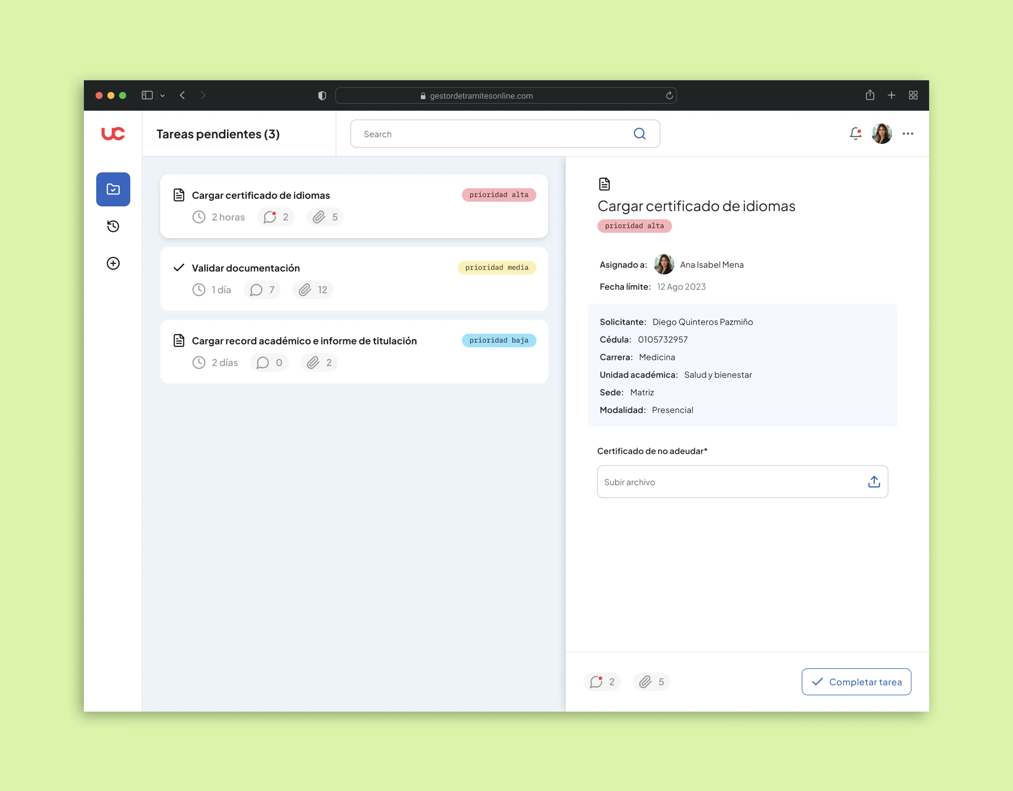 The main goal for university staff is to efficiently complete tasks related to student procedures, allowing these processes to progress smoothly to the next step. The design of the staff interface initially focused on enabling users to quickly address their assigned tasks. However, during usability testing, we identified a major pain point: communication about issues between assignees was often unclear and inconsistent.