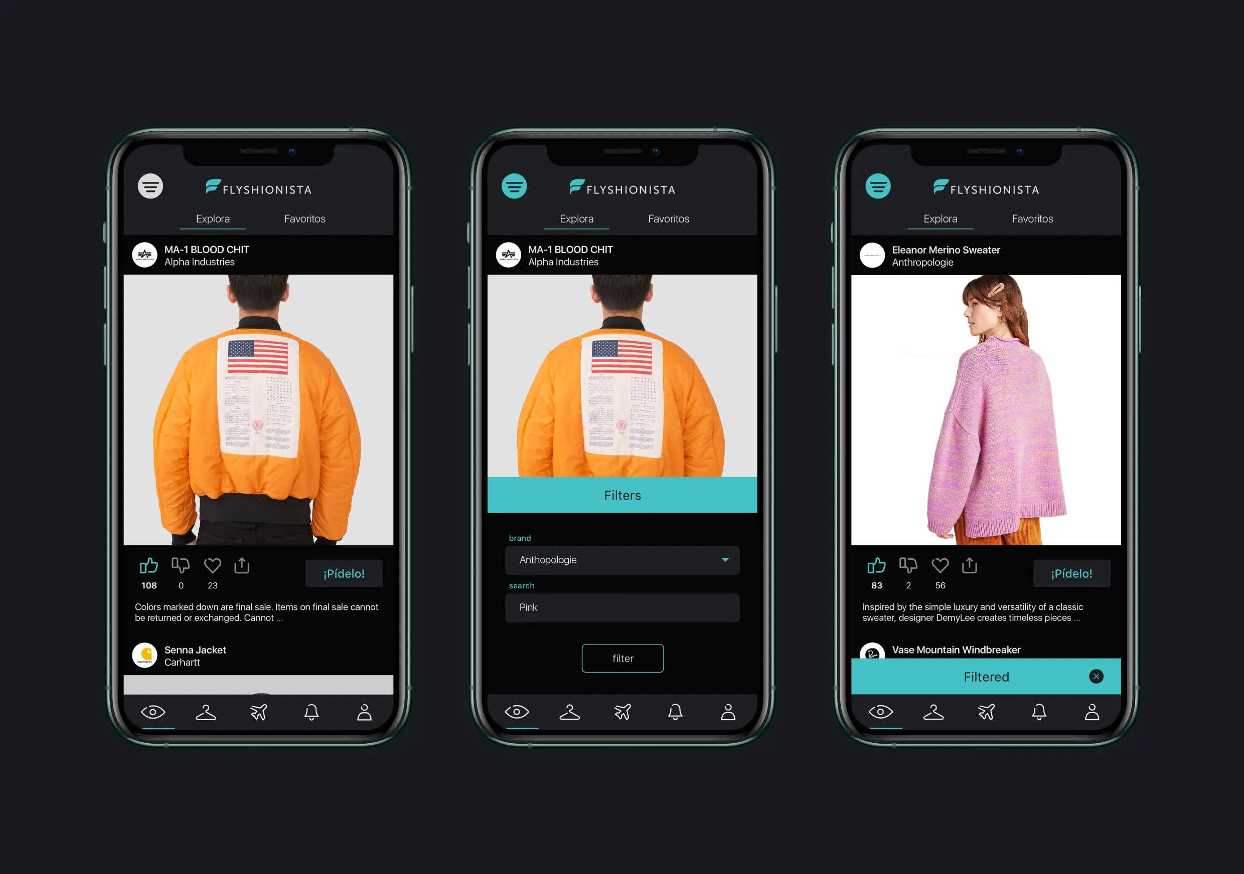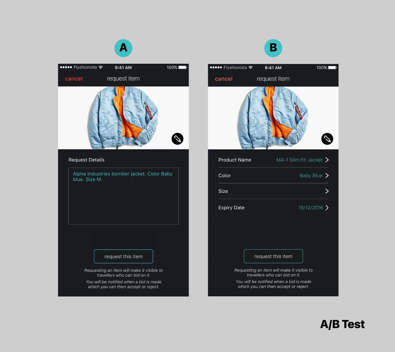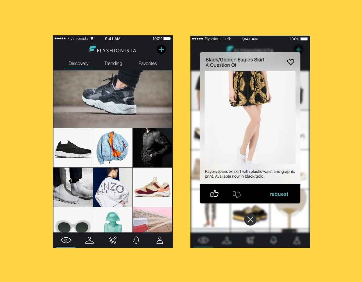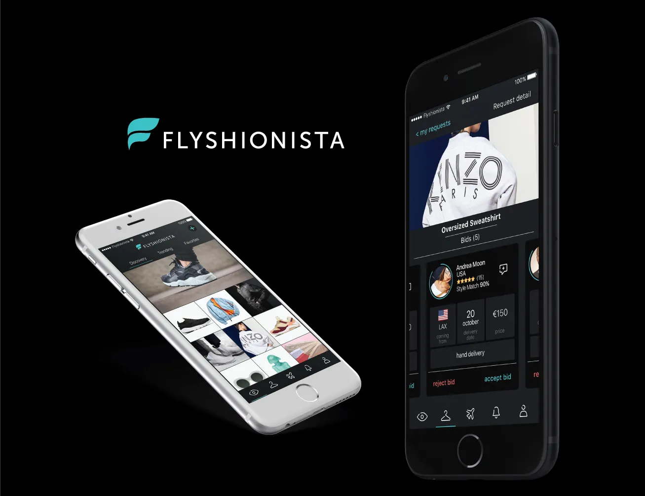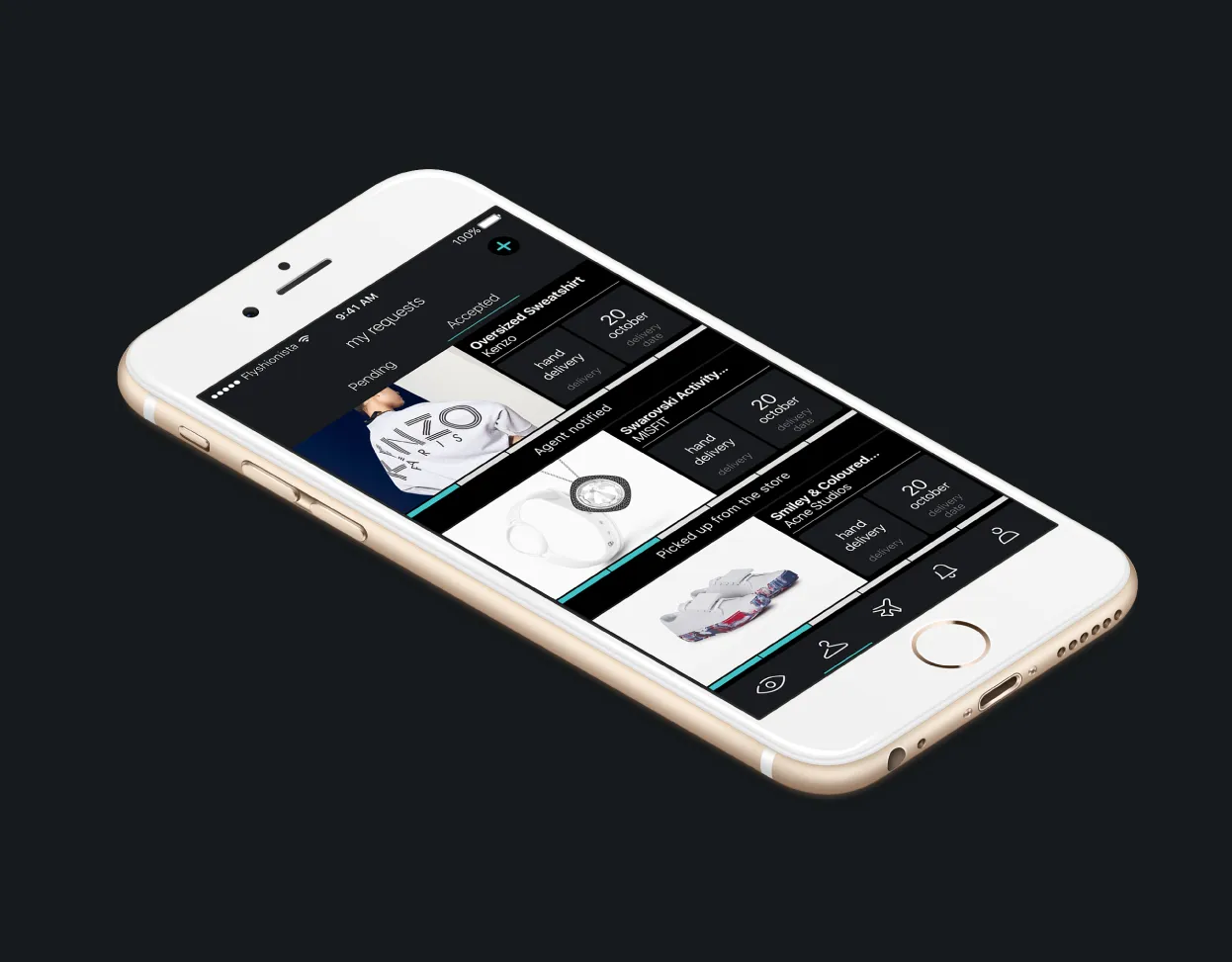 Dark mode: We have to position ourselves in 2016 when we designed Flyshionista. iOS 13 first introduced dark mode in 2019, so 2 years before we found out, thanks to user feedback, that a dark UI will help our product look reliable and expensive to them so they can trust our service.